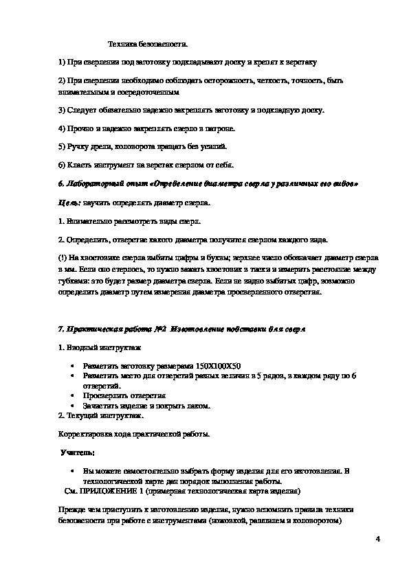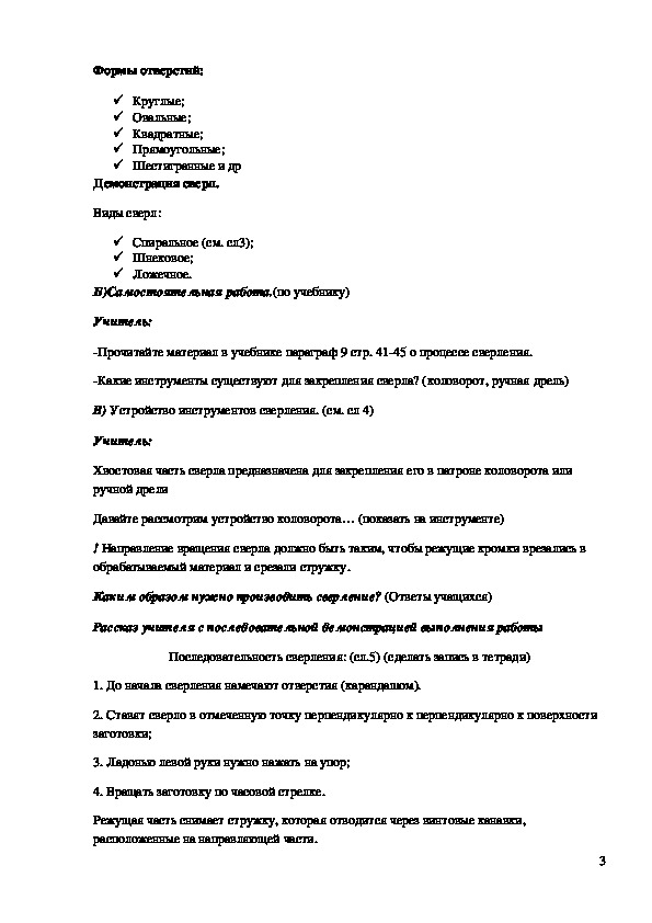 Конспект урока "Сверление отверстий" 5 класс.Тема: Сверление отверстий