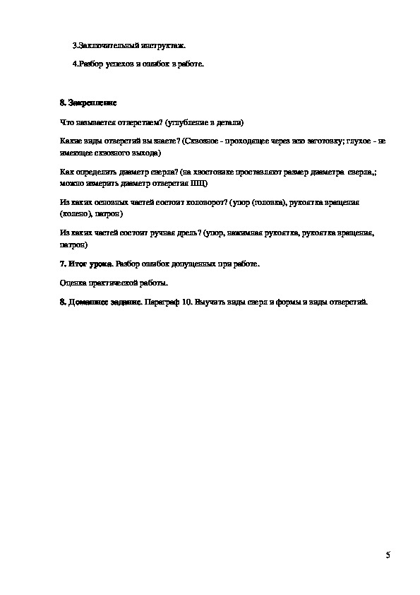 8. Домашнее задание. Параграф 10. Выучить виды сверл и формы и виды отверстий.