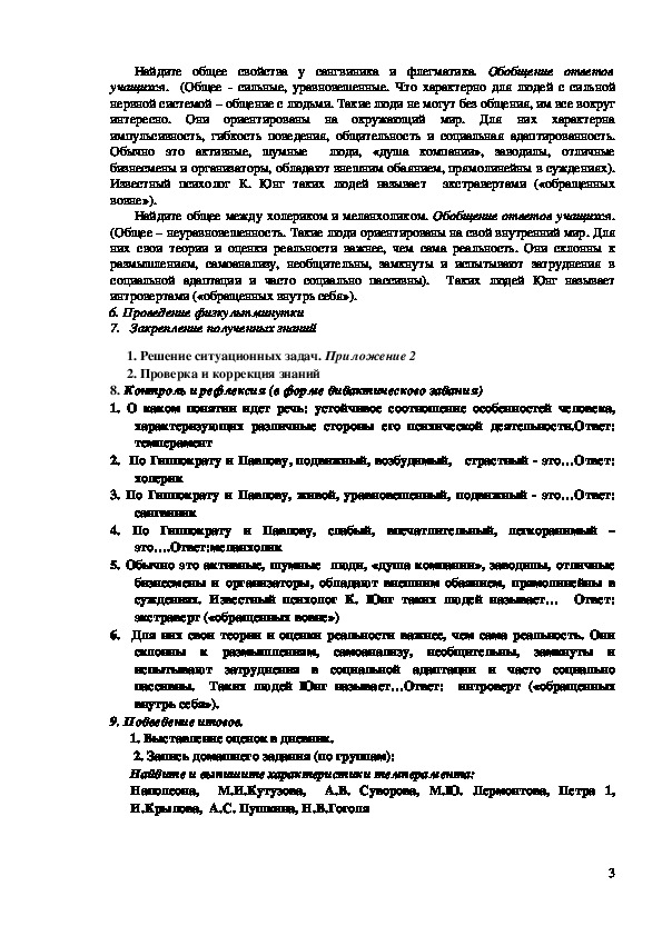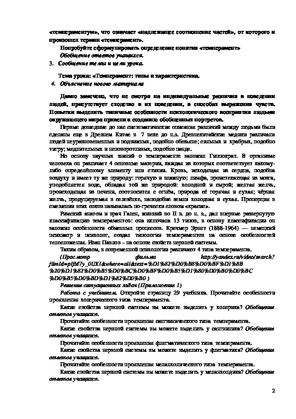 2. Познакомить учащихся с понятием темперамент, его типами и характеристиками