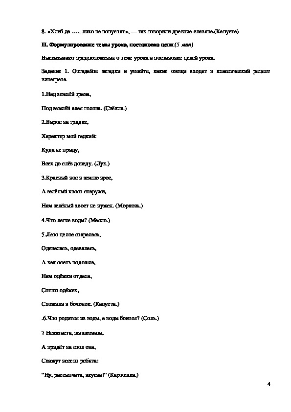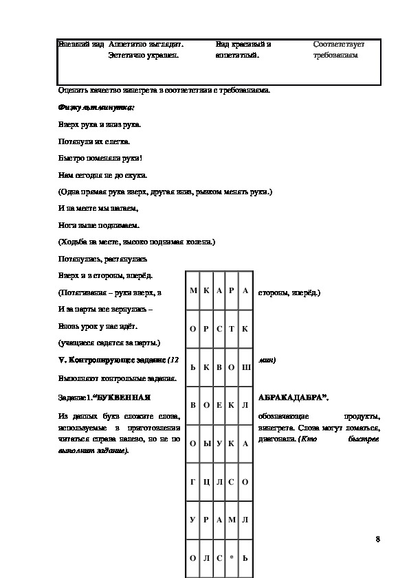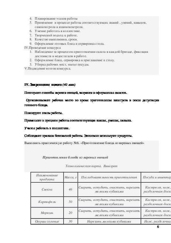 Тема урока: «Тепловая кулинарная обработка овощей. Практическая работа «Приготовление винегрета».