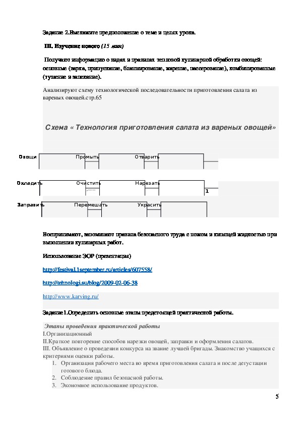 Тема урока: «Тепловая кулинарная обработка овощей. Практическая работа