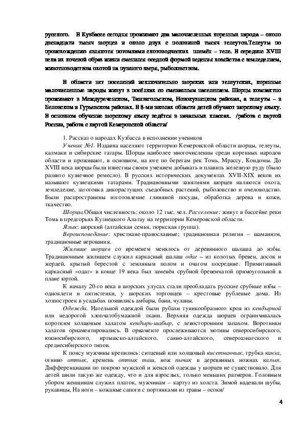 3русского. В Кузбассе сегодня проживают два малочисленных коренных народа – около