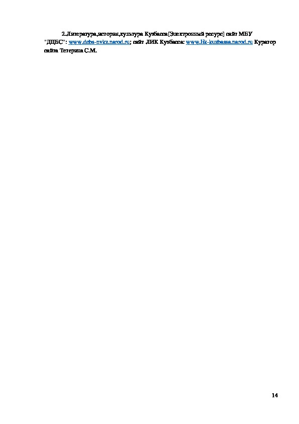 132.Литература,история,культура Кузбасса[Электронный ресурс] сайт МБУ