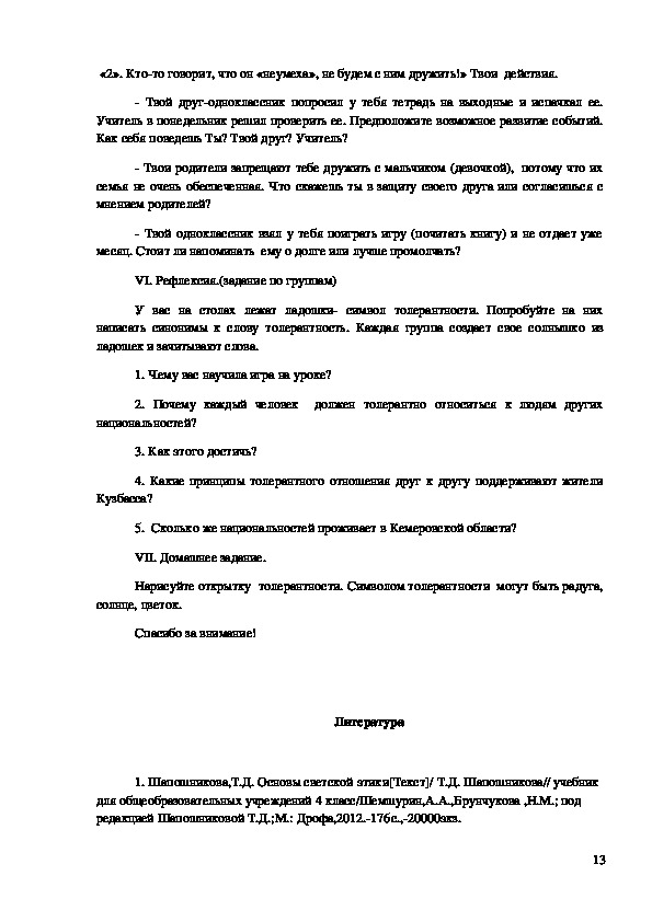12«2». Ктото говорит, что он «неумеха», не будем с ним дружить!» Твои действия.