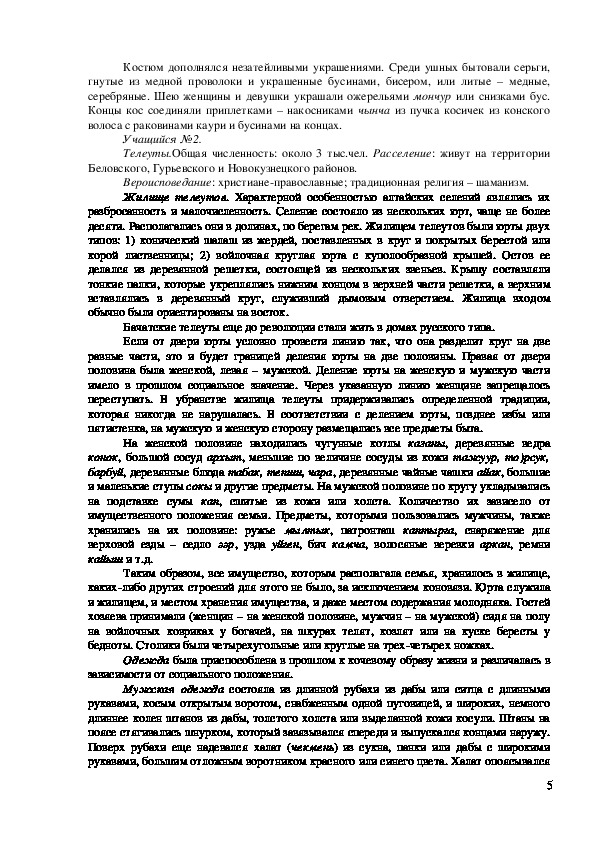 Ученик №1. Издавна населяют территорию Кемеровской области шорцы, телеуты,