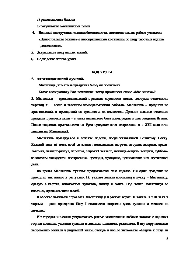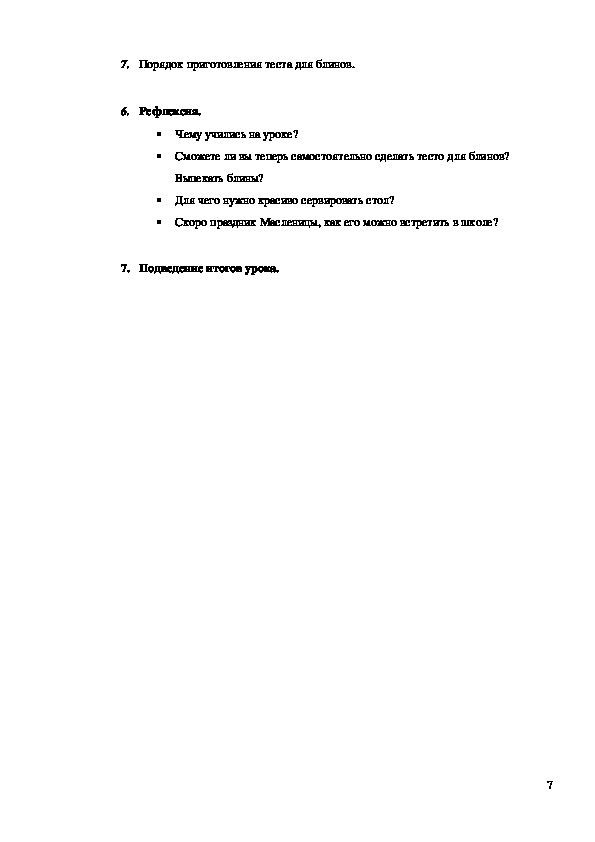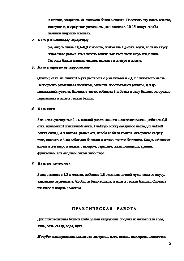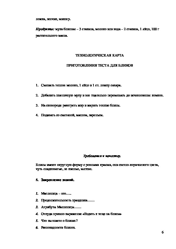 Цель урока: овладение приёмом и технологией выпечки блинов.