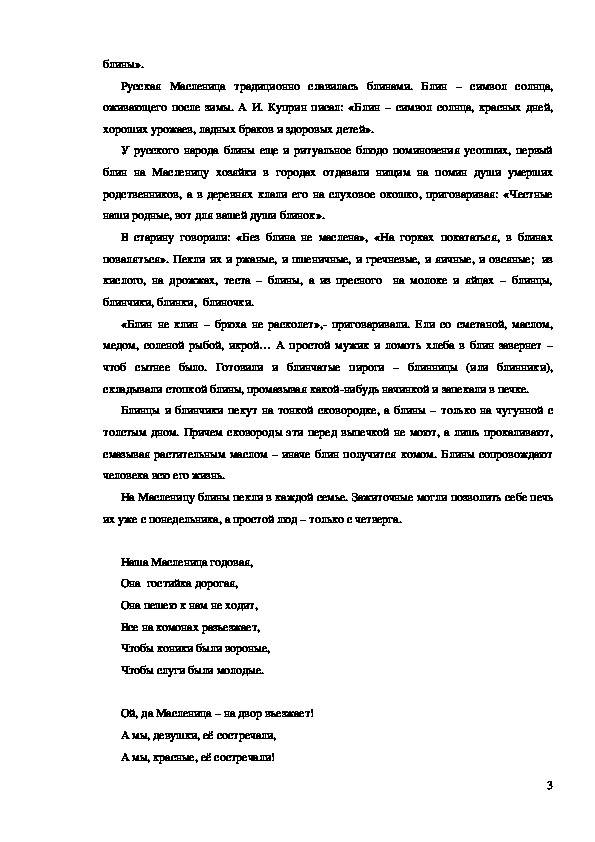 оживающего после зимы. А И. Куприн писал: «Блин – символ солнца, красных дней,