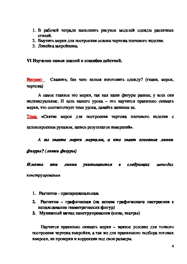Тема: «Снятие мерок для построения чертежа плечевого изделия с