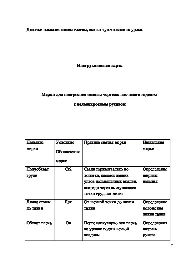 2. Выучить мерки для построения основы чертежа плечевого изделия.
