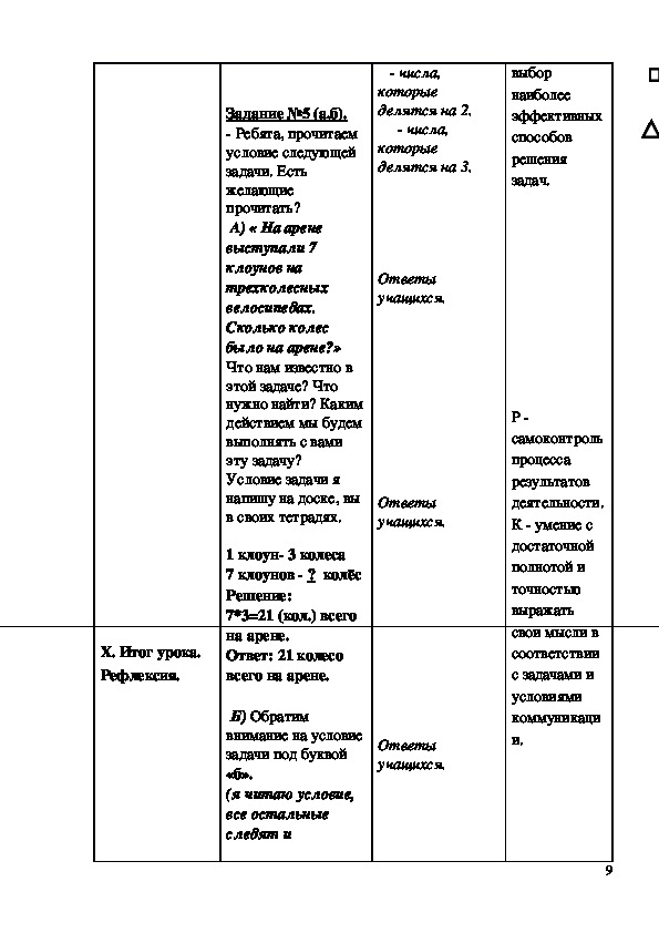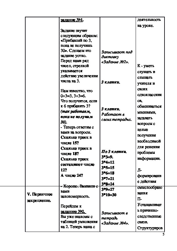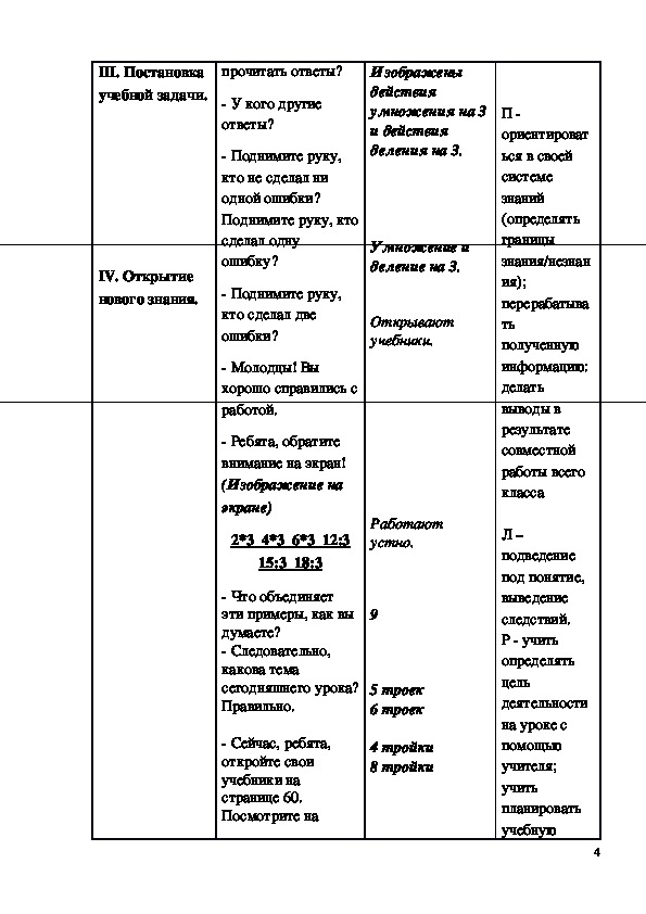 Деятельностная цель: формирование представлений об умножении и делении на 3;