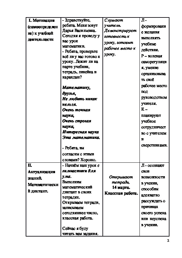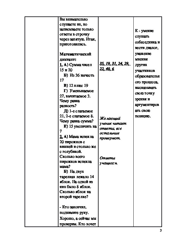 4) создать условия для формирования коммуникативных навыков, умения сотрудничать; формирование познавательного интереса к занятиям математикой;