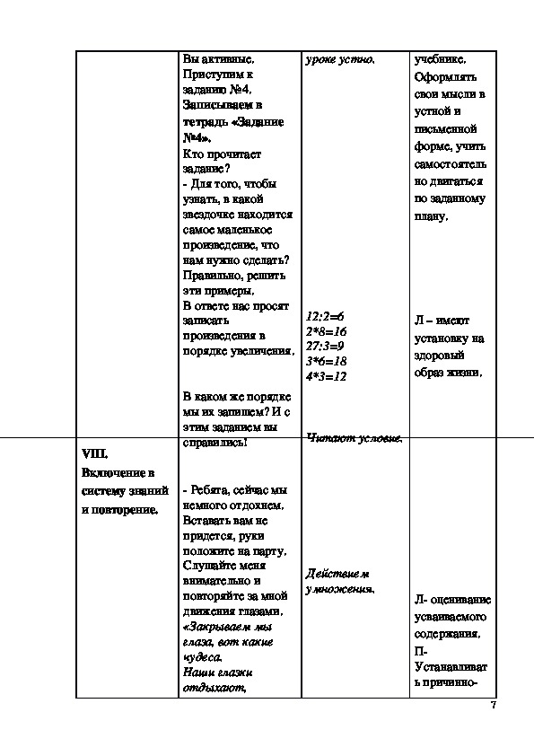 6) Способствовать развитию познавательных процессов (восприятия, внимания, памяти, мышления).урок