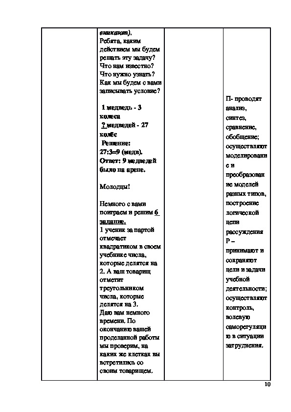 3) создать условия, способствующие формированию представления о умножении и делении на 3;
