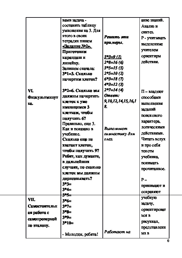 2) развивать умение применять при вычислении математических выражений и задач таблицу умножения на 3;