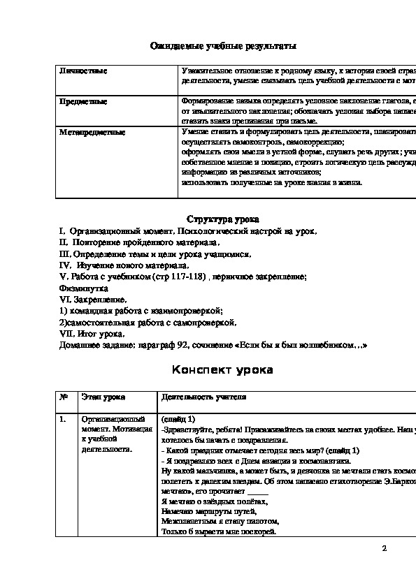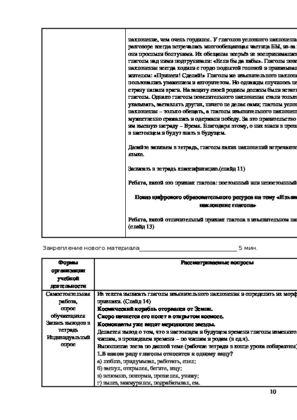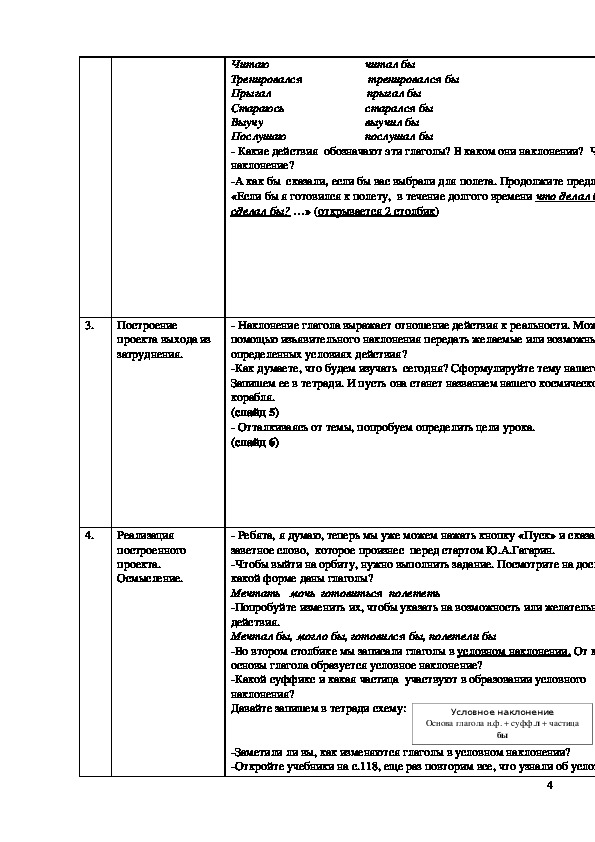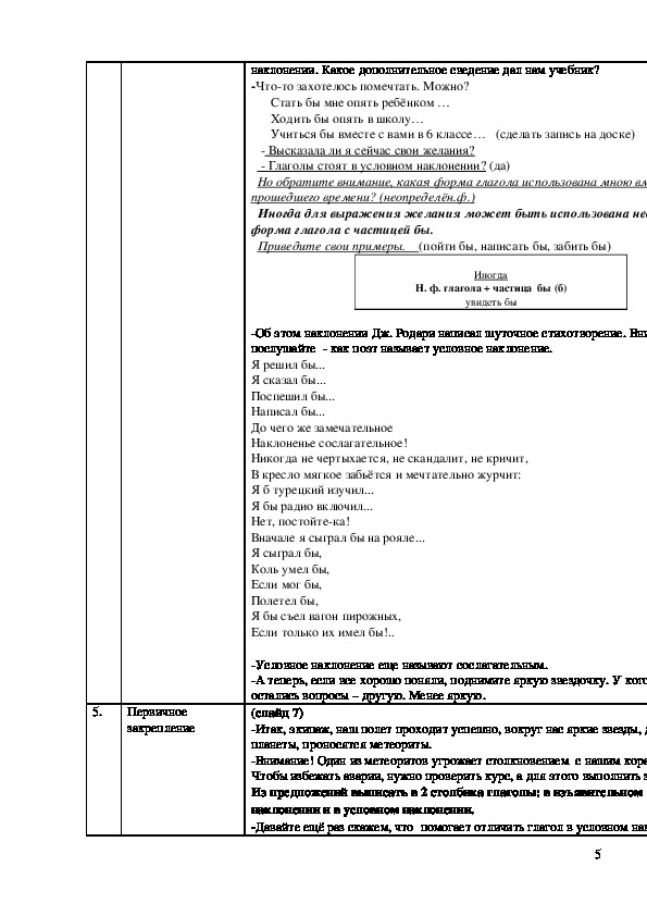тип урока: урок-путешествие.• Сформировать представление об условном наклонении глагола.