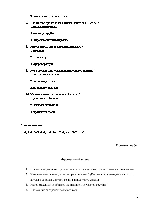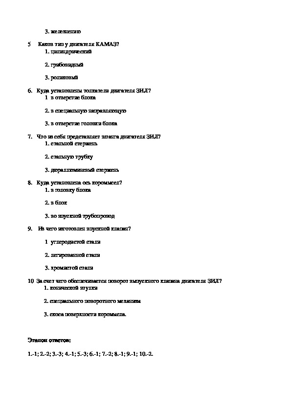 1.1; 2.2; 3.3; 4.1; 5.3; 6.1; 7.2; 8.1; 9.1; 10.2.Приложение 3