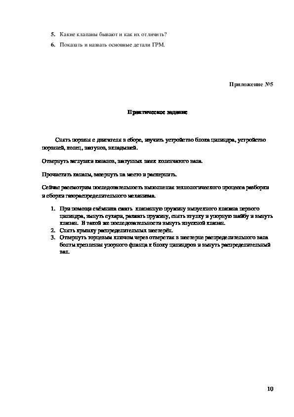 тему:"Устройство, разборка и сборка механизмов двигателя"