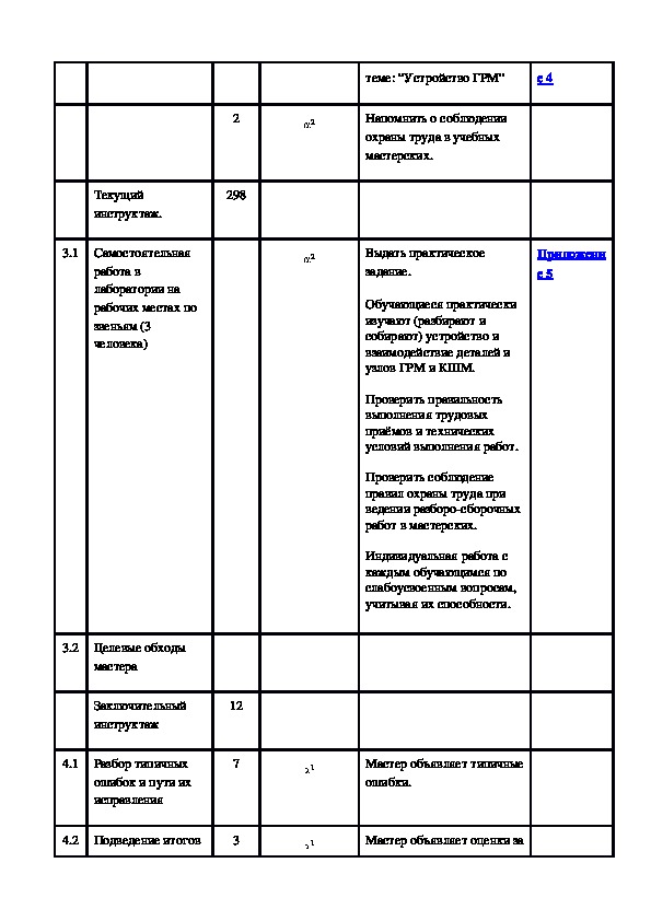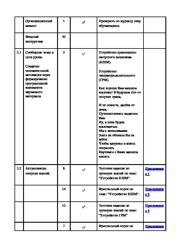 План урока производственного обучения на тему:"Устройство, разборка и сборка механизмов двигателя"