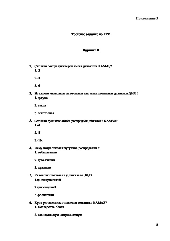 1. Сколько распредшестерен имеет двигатель КАМАЗ?