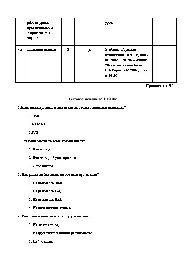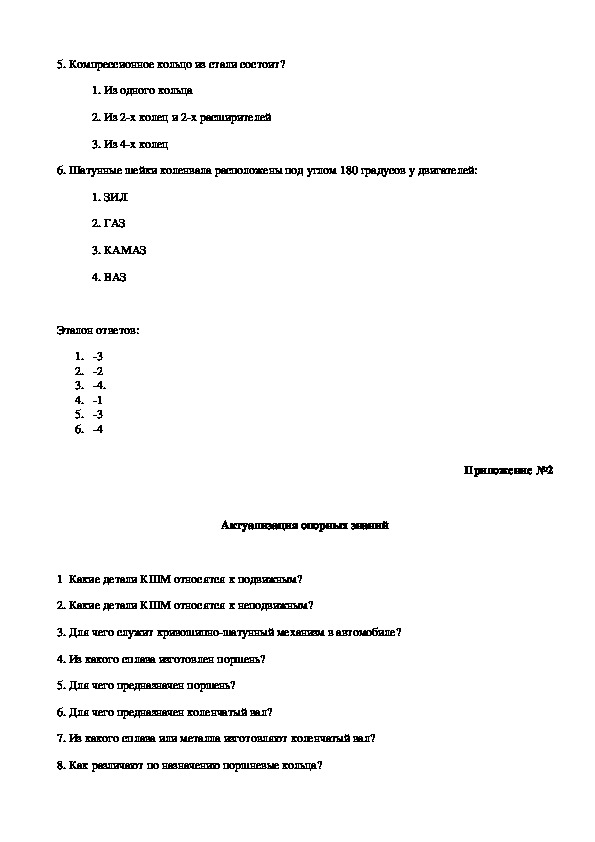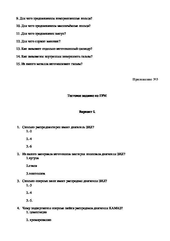 1. Устройство автомобиля, темы: “Устройство КШМ” и “Устройство ГРМ”.