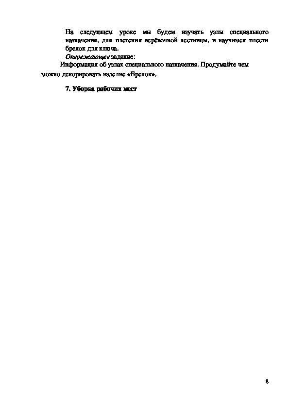 Цель урока: Научить учащихся первоначальным приемам узелкового плетения, на основе двойного плоского узла.