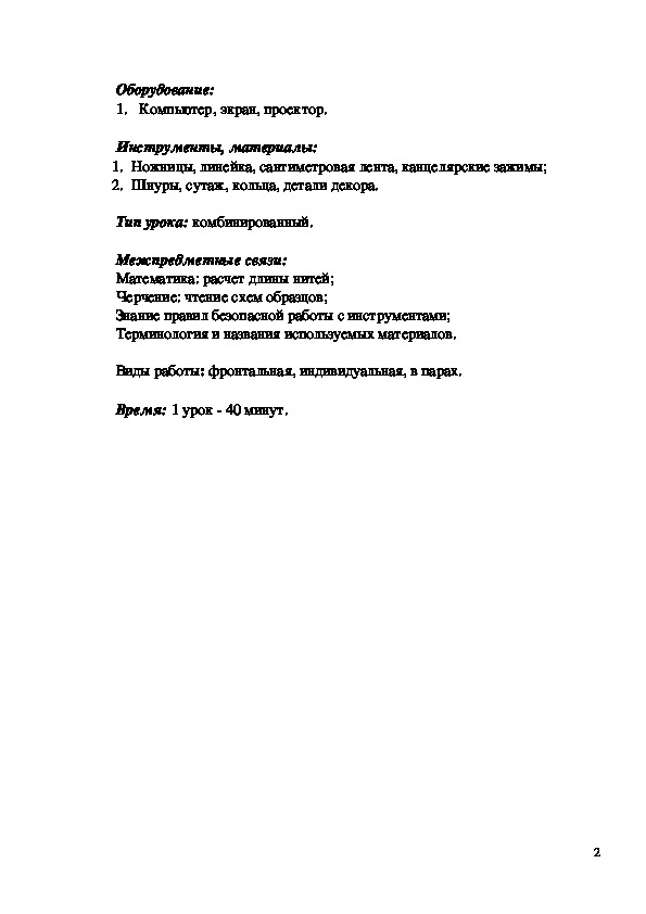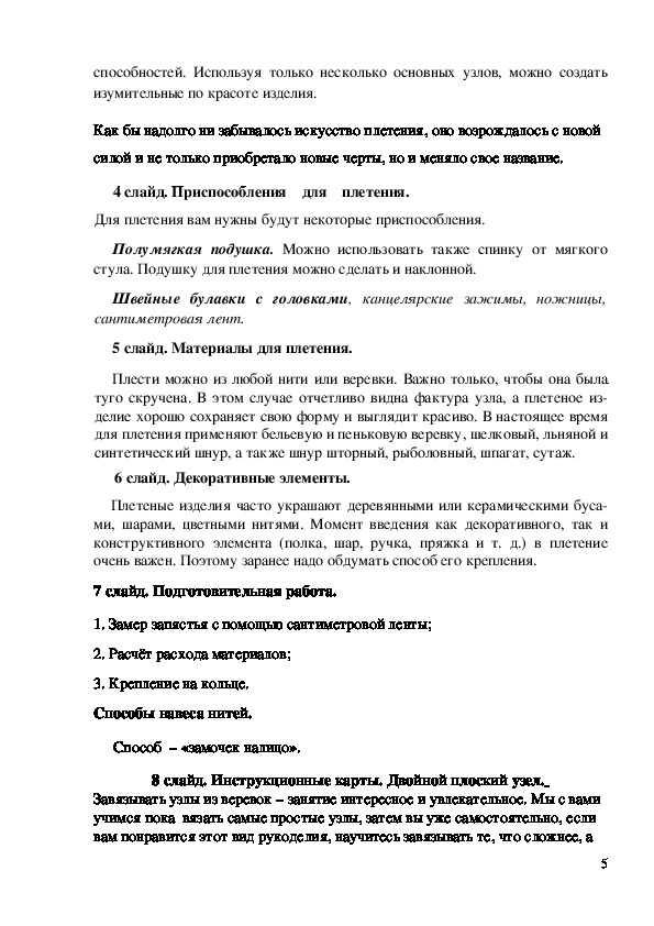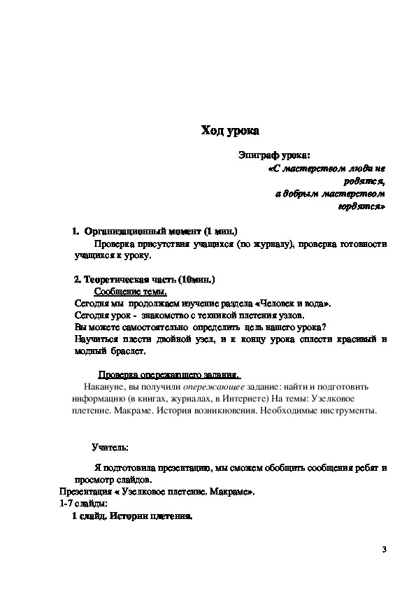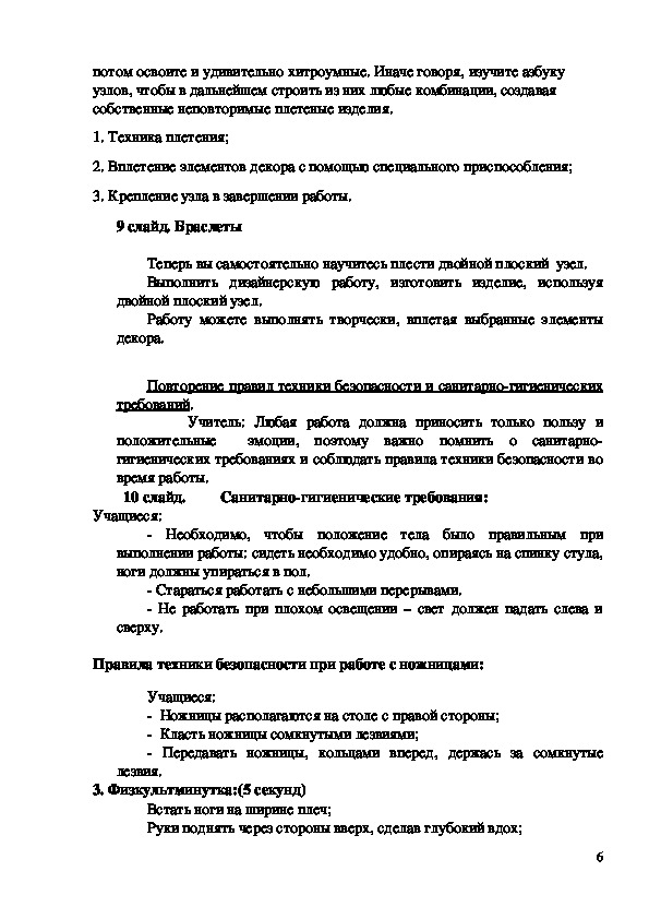 по теме: «Узелковое плетение. Выполнение изделия «Браслет из узелков»»