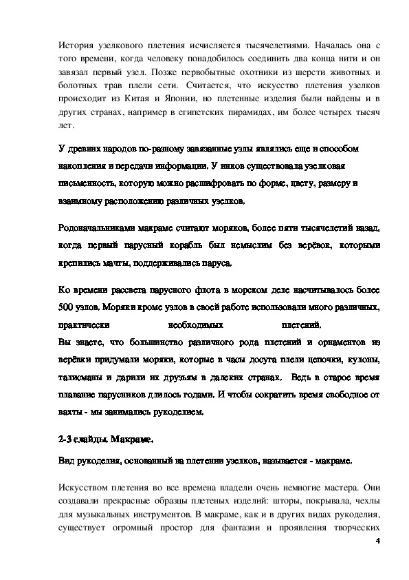 3История узелкового плетения исчисляется тысячелетиями. Началась она с
