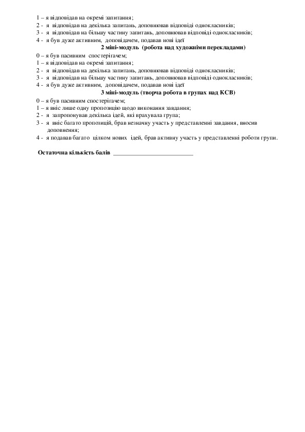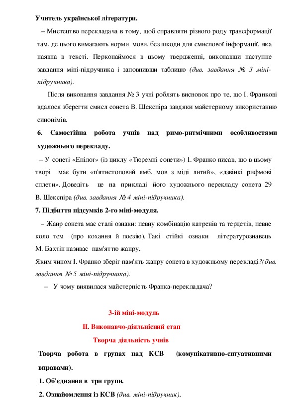 4.4. Робота учнів над вільним перекладом сонета (див. Task № 5 міні