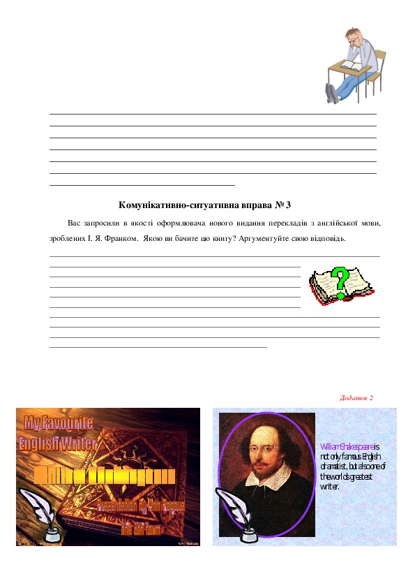Перегляд мультимедійної презентації “My Favourite English Writer” (див.