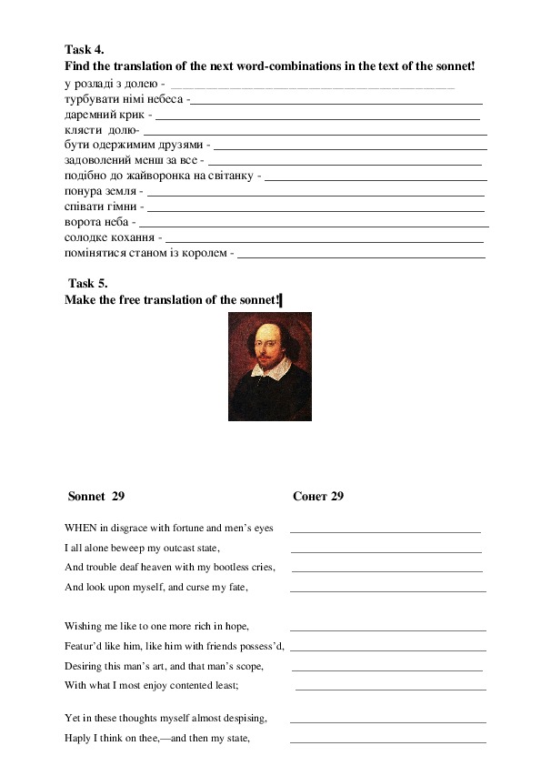 4. Робота над оригіналом сонета № 29 В. Шекспіра.