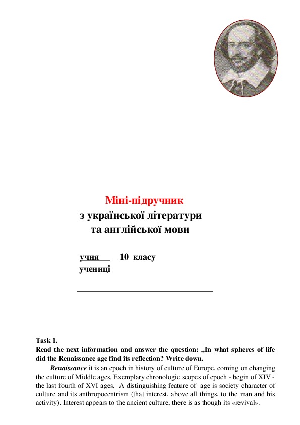 тому числі й творчості В. Шекспіра.Учитель англійської мови.