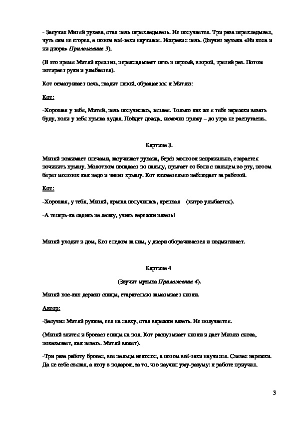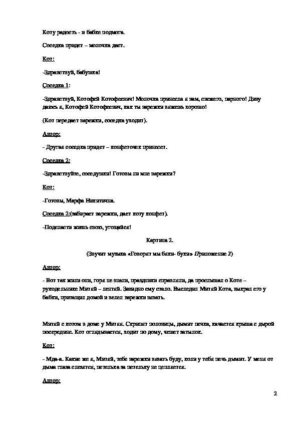 II. Сказка «Кот рукодельник»: (12 минут)