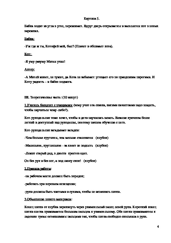 Конспект урока "В гостях у кота - рукодельника"Театрализованный урок «В гостях у кота-рукодельника»