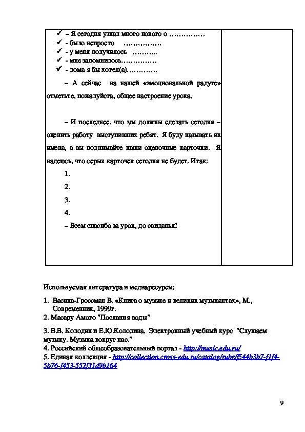 – Всем спасибо за урок, до свиданья!