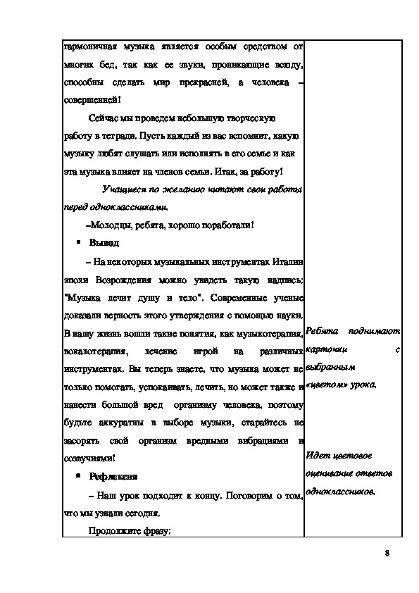 – Наш урок подходит к концу. Поговорим о том,