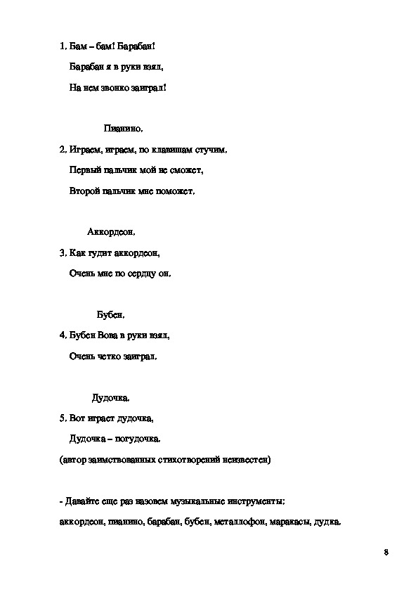инструментах, но и уметь прохлопать, и пропеть мелодию песни.