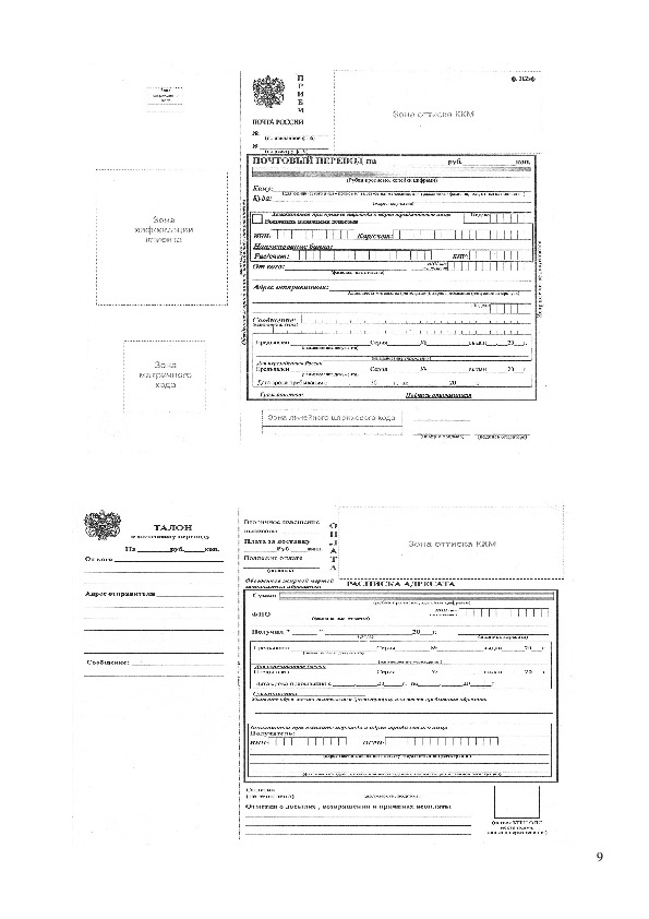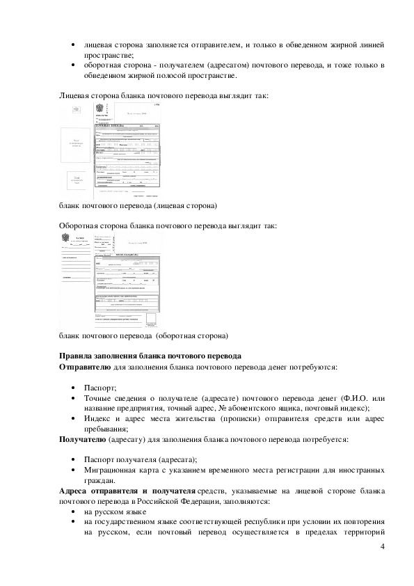 Бланк почтового перевода имеет лицевую и оборотную стороны.