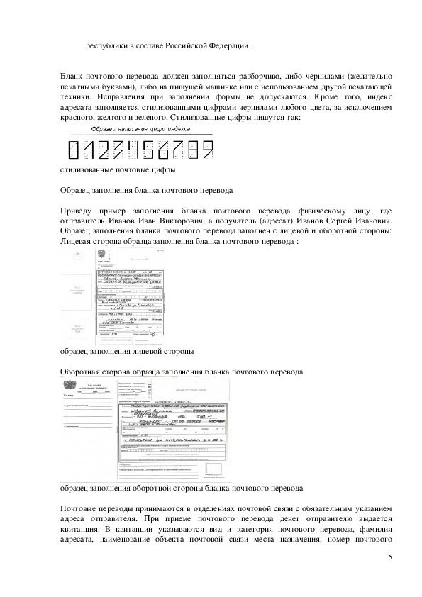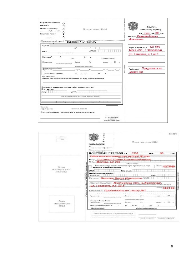 • Точные сведения о получателе (адресате) почтового перевода денег (Ф.И.О. или название