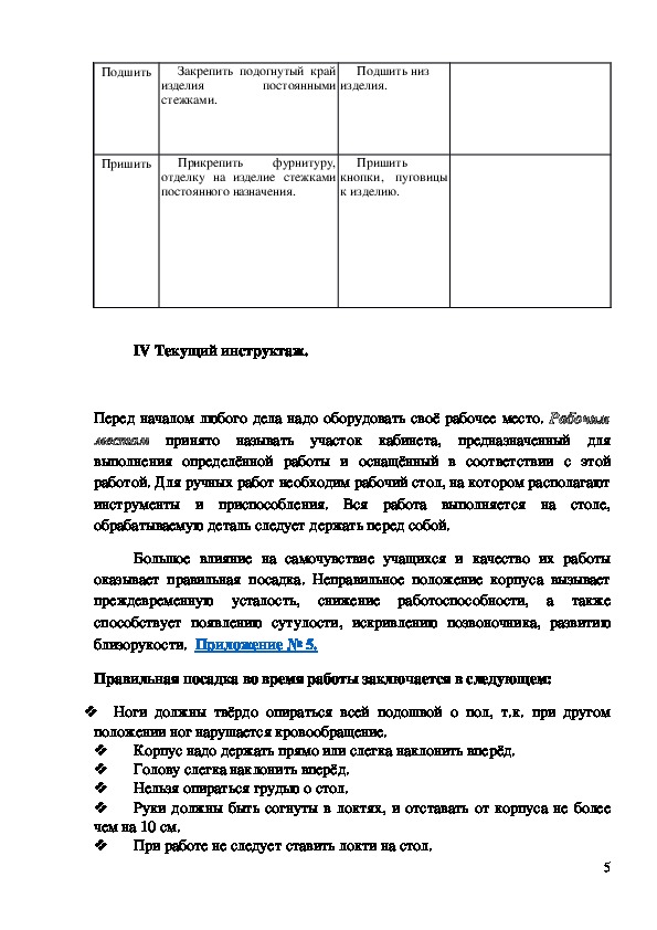 Организация рабочего места. Технология выполнения ручных стежек и строчек.
