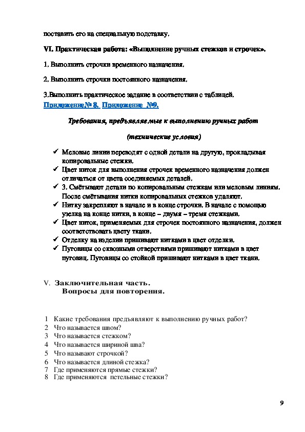 Практическая работа: «Выполнение ручных стежков и строчек»