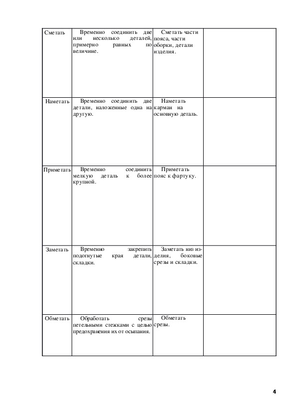 обмётывание петель и срезов, пришивание пуговиц.
