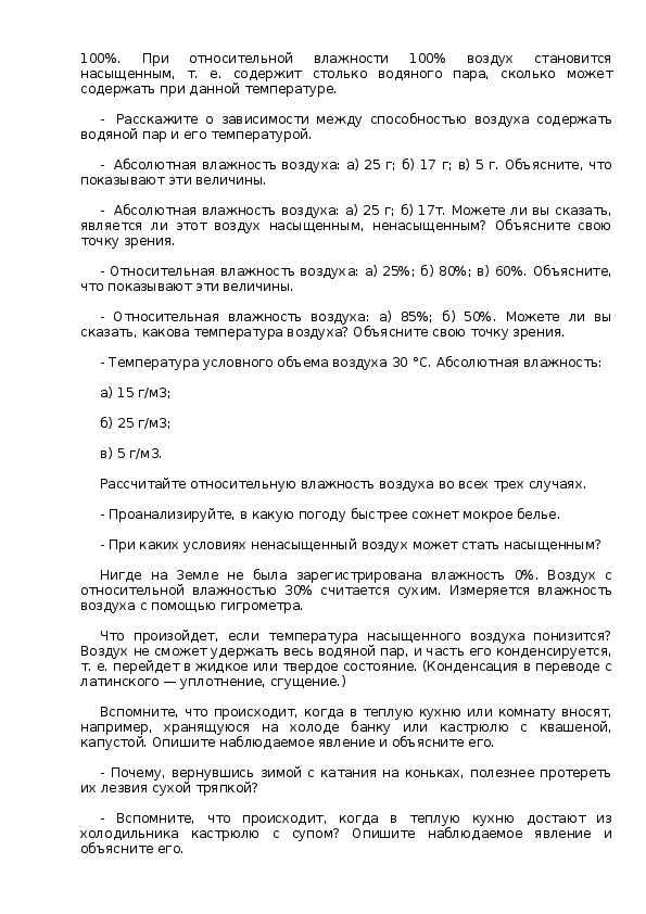 - Абсолютная влажность воздуха: а) 25 г; б) 17 г; в) 5 г. Объясните, что
