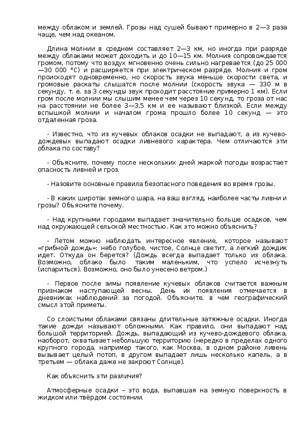 образоваться между частями одного облака, между двумя облаками илимежду облаком и землей. Грозы над сушей бывают примерно в 2—3 раза