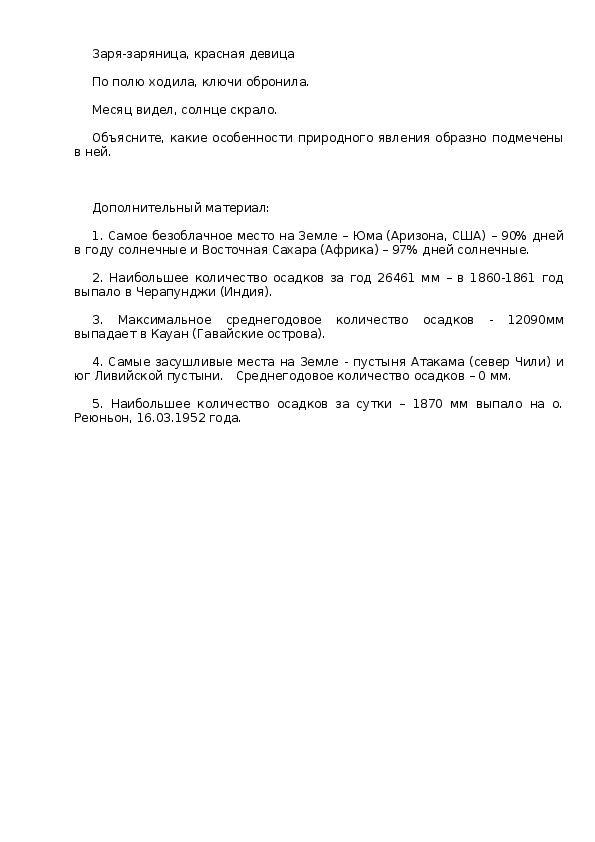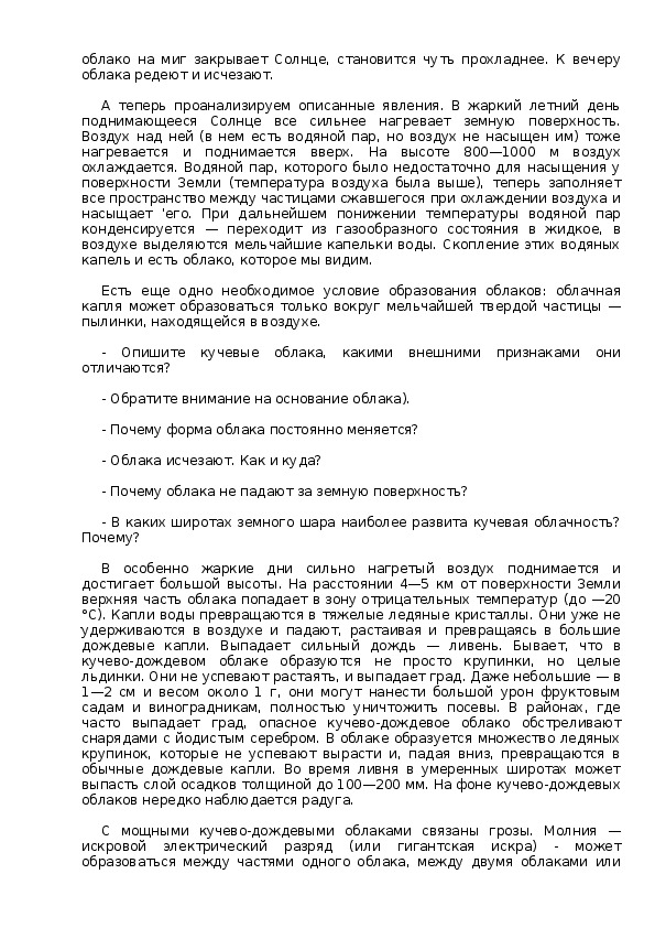 Оборудование: таблица «Виды облаков», рисунки и схемы учебника,