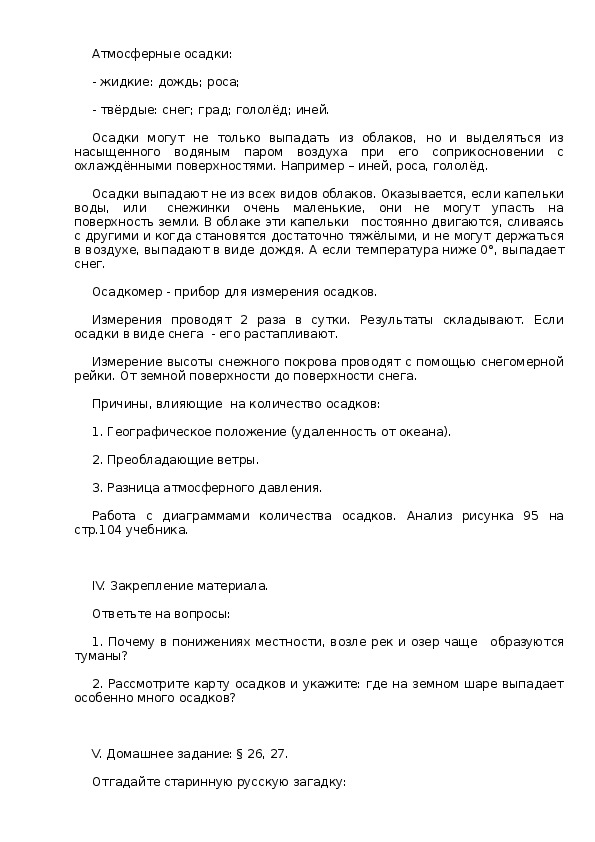 Урок на тему: «Влага в атмосфере. Атмосферные осадки»