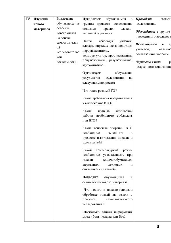 Тема: Влажнотепловая обработка ткани 5 класс.