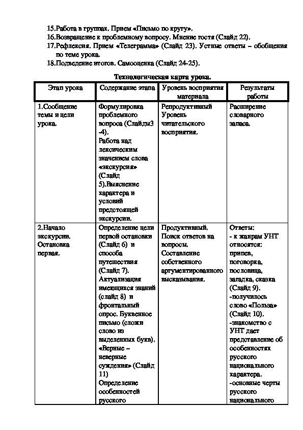 17.Рефлексия. Прием «Телеграмма» (Слайд 23). Устные ответы – обобщения