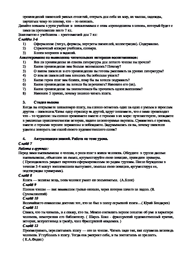 Знакомство с учебником – хрестоматией для 7 кл: