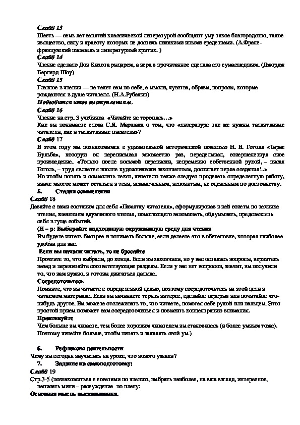 Давайте с вами составим для себя «Памятку читателя», сформулировав в ней советы по технике