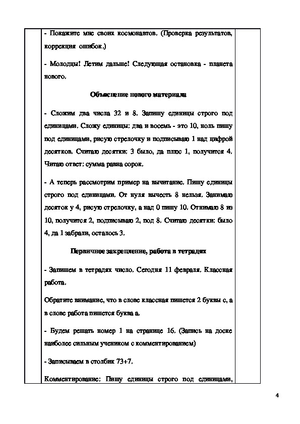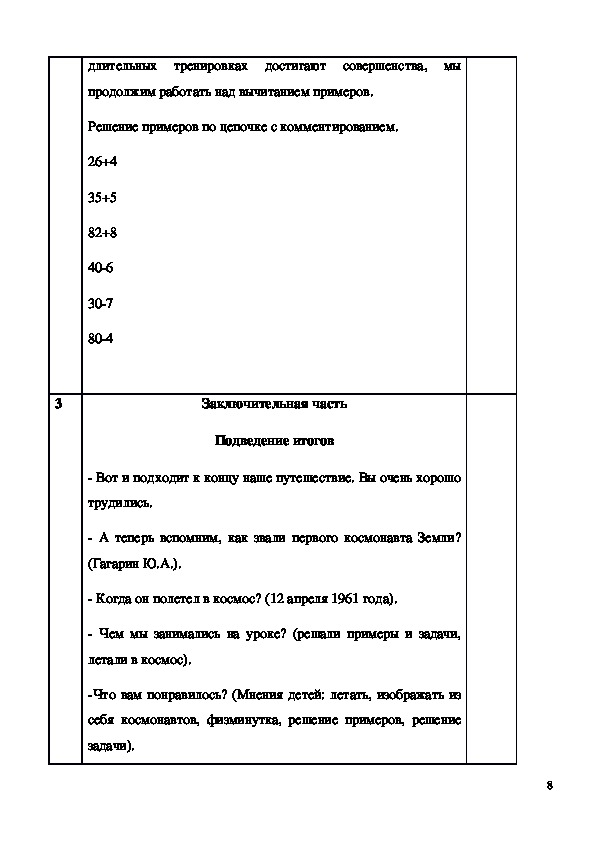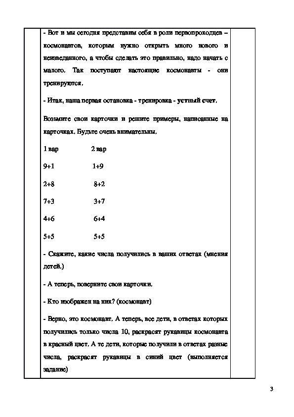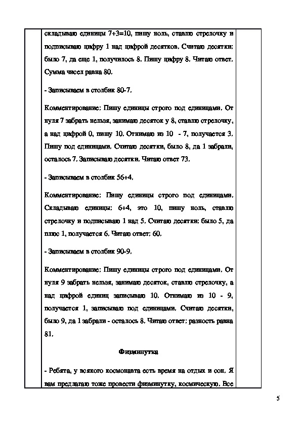 себя космонавтов, физминутка, решение примеров, решение